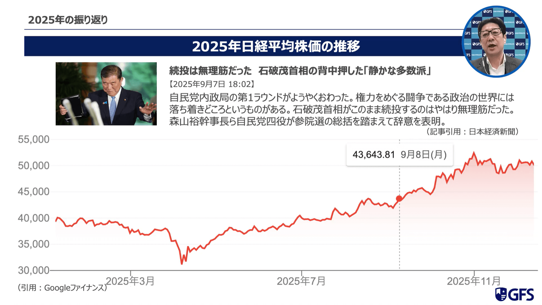 この動画の前半では、GFS校長の市川さんが、2025年に起きた投資イベントとそのイベントによる日経平均株価の推移を振り返っているよ✨