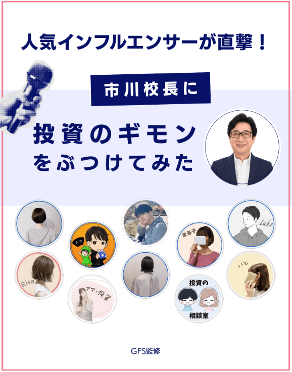 この動画では、人気インフルエンサー総勢10人が、GFSの市川校長に投資に関する本音の質問をぶつけて、その質問に解説してくれる内容になっているよ💨