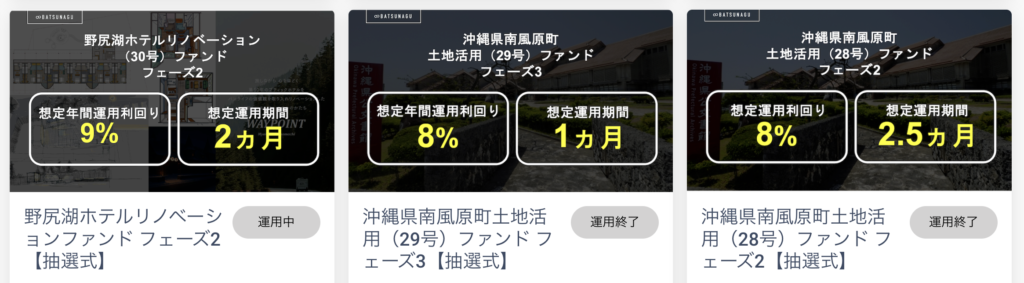 しかもBATSUNAGUは、6ヶ月未満の短期ファンドがたくさん用意されている!