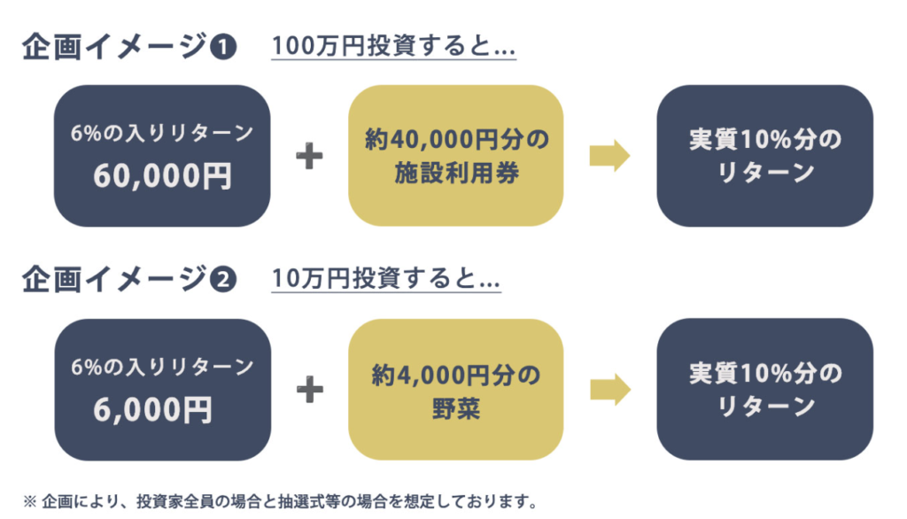 投資を通じて地域を盛り上げたり、誰かの夢を叶えたりするプロジェクトに参加できる🧡