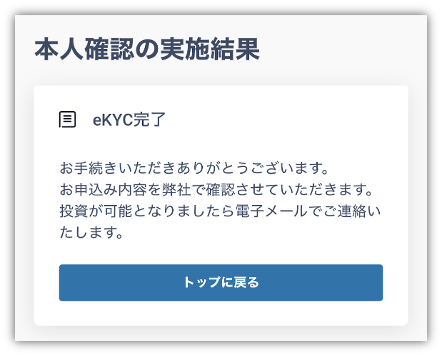 無事に撮影が終わったら「eKYC完了」の表示が出るから、これで完了🥰