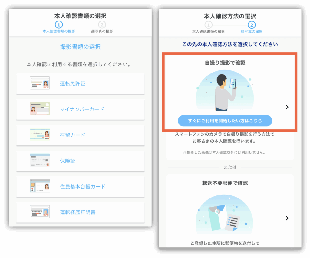 「自撮り撮影で確認」が審査が早くてオススメ✨