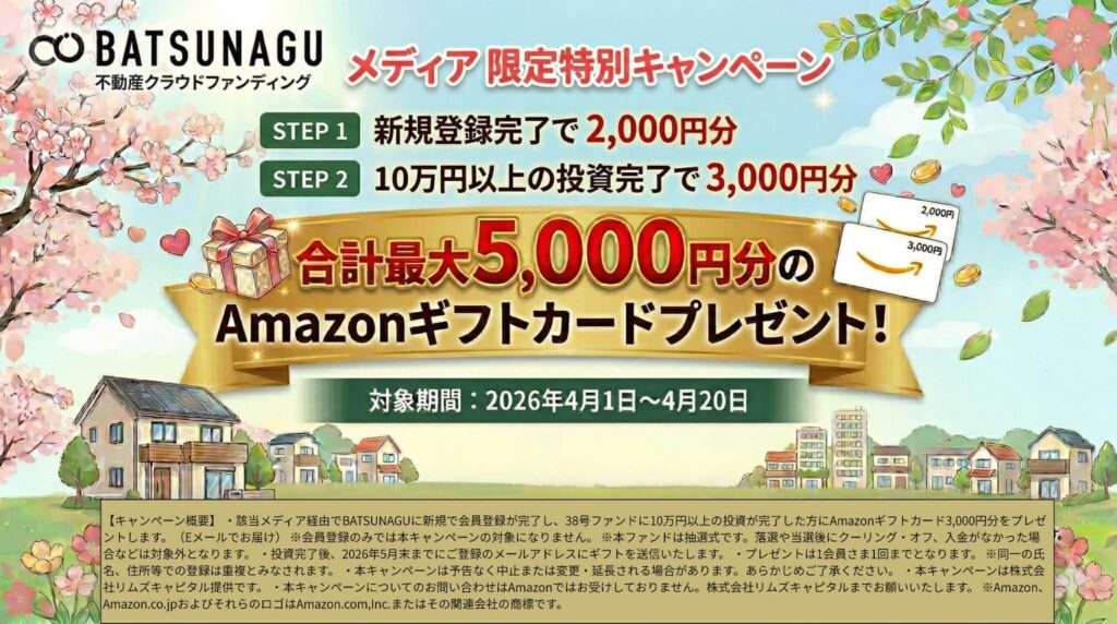 BATSUNAGUの案件の利回りは6〜10%で、直近10件の平均利回りは約8.2%(2026年1月時点)✨