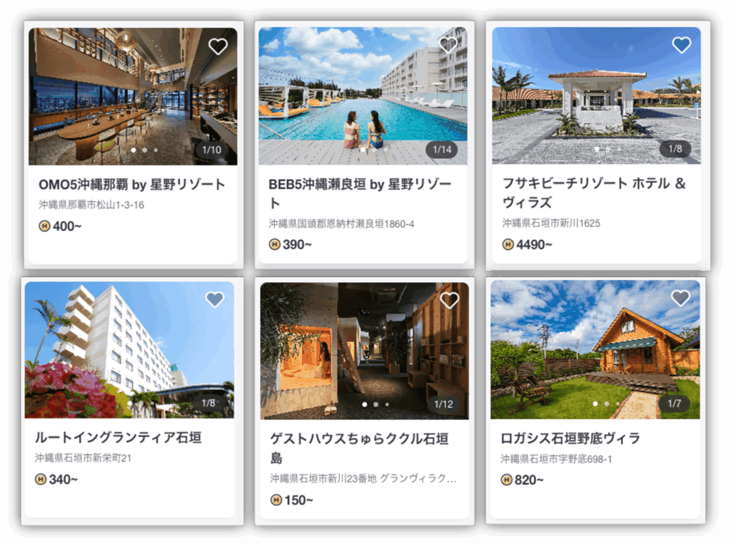 例えば、沖縄のホテルを検索するとこんな感じ❣️