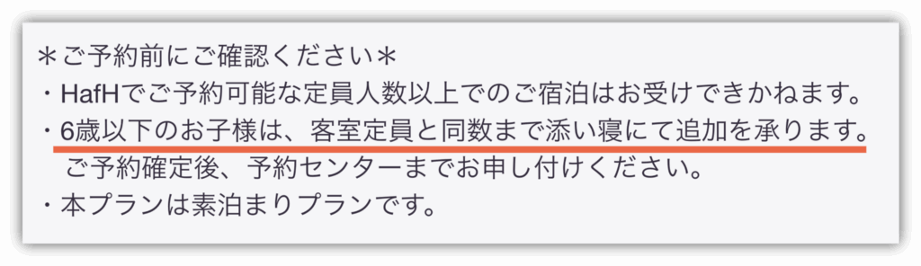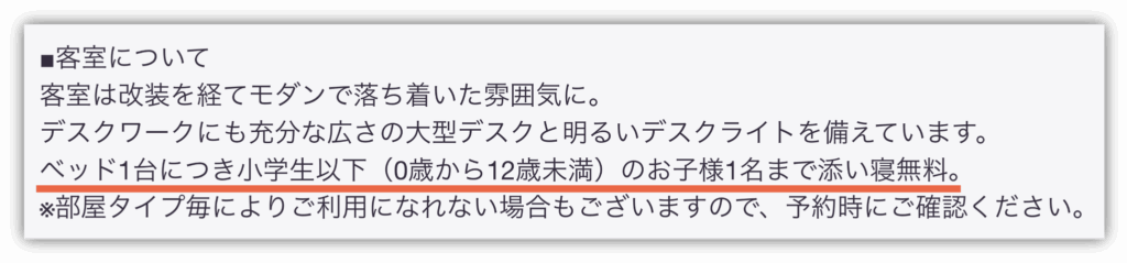 これら以外にも、一部のホテルでは施設の詳細ページで添い寝に関する記載があるから、予約するときにチェックしよう✨