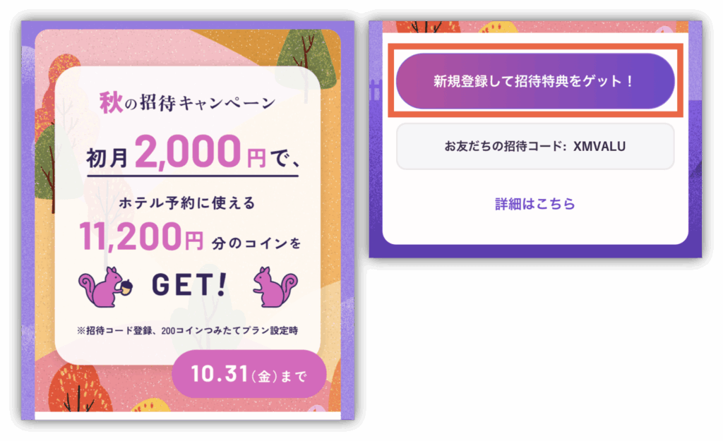 公式サイトに移動したら「新規登録して招待特典をゲット!」をタップ🧡
