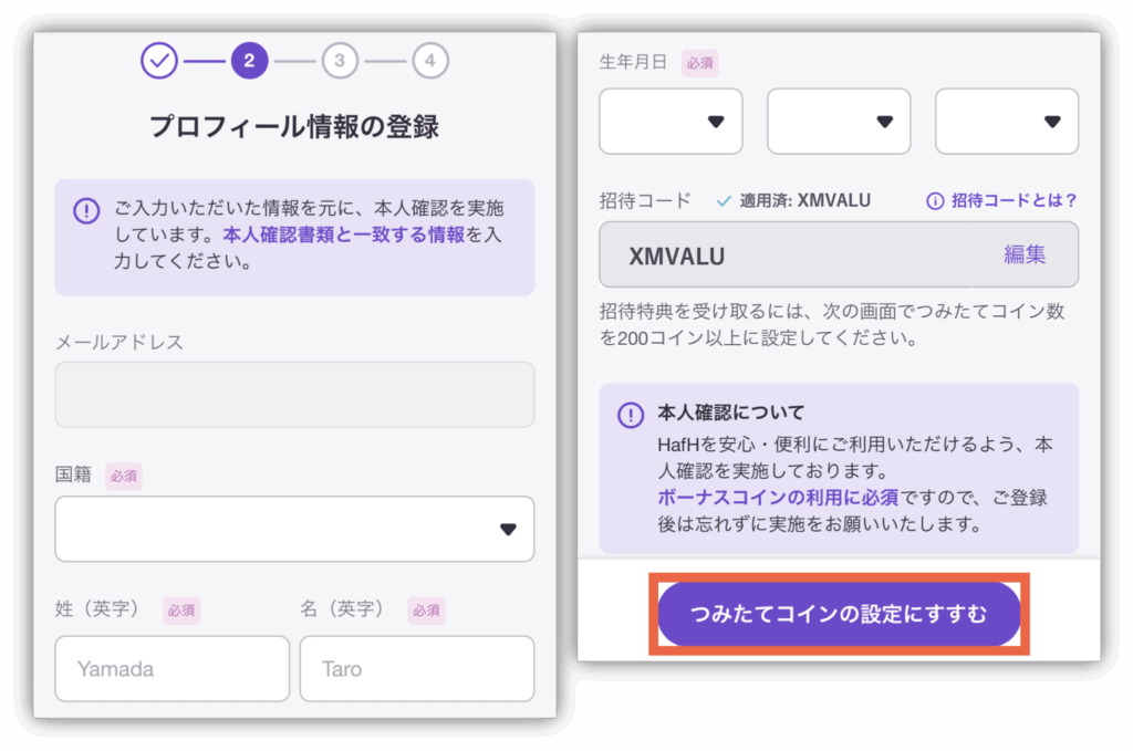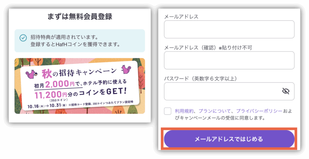 ここからは、招待コードを使ってHafHにオトクに登録する方法を3ステップで解説していくね✨