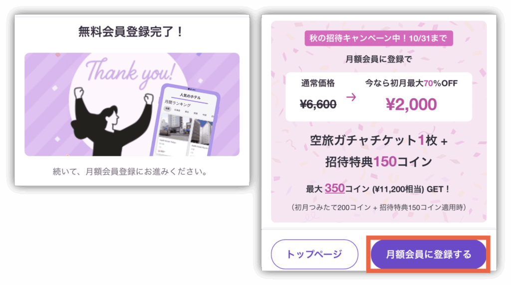 キャンペーン中は本当にオトクだから、とりあえず登録して特典だけもらい、旅行に行くときまで休会しておくのもアリだよ❣️