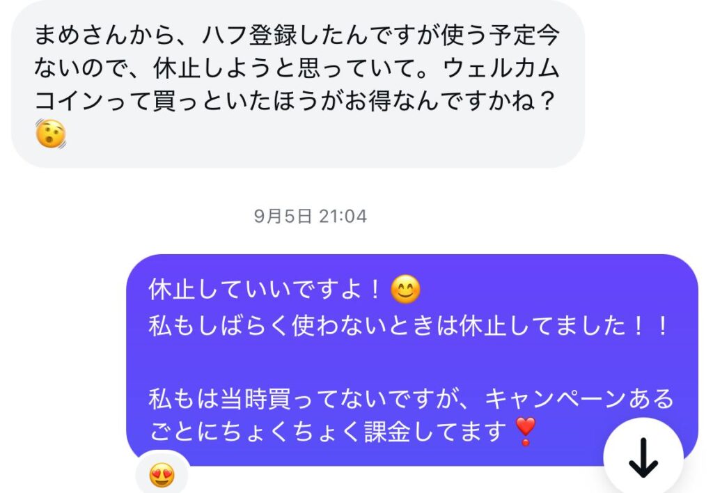 HafHでは、コインを使いたい月まで休会して支払いをストップできるから、余計な出費はかからないよ🧡